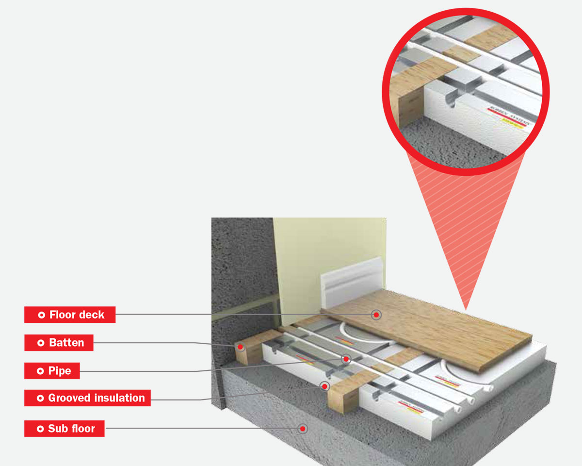 Underfloor heating systems (UFH) can be run using most heating fuels. A conventional gas, oil or solid fuel boiler can be used with a water-based or ‘wet’ underfloor system. Alternatively, the underfloor heating can be powered by renewable technologies such as a heat pump.