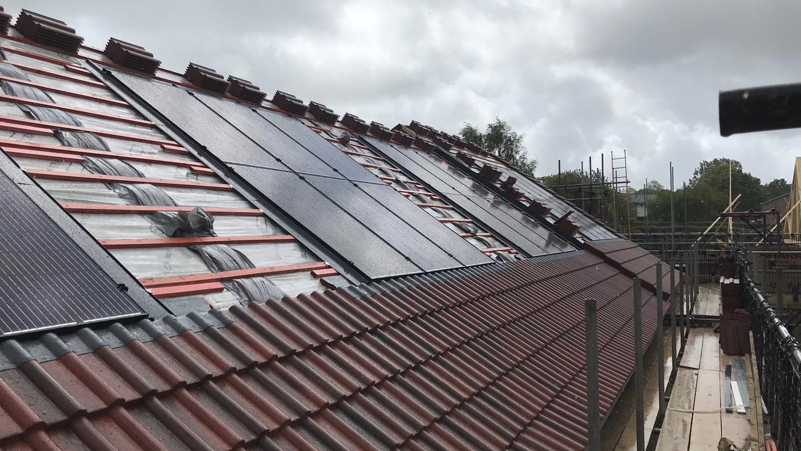 The system seamlessly integrates the solar into the roof utilising the GSE in roof kit. We selected Sharp’s recently released 300W aesthetically pleasing black solar panels. Later this year we will return with the inverters and commission to the latest G99 standards at which point the houses will be generating clean renewable energy.