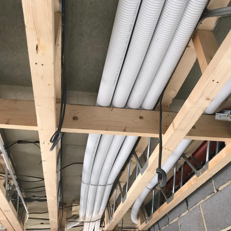 Our MVHR team have just completed the first fix – of a Robbens Mechanical Ventilation and Heat Recovery System. With the increase need for buildings to become more and more air tight a greater number of properties are requiring some form of Mechanical Ventilation.